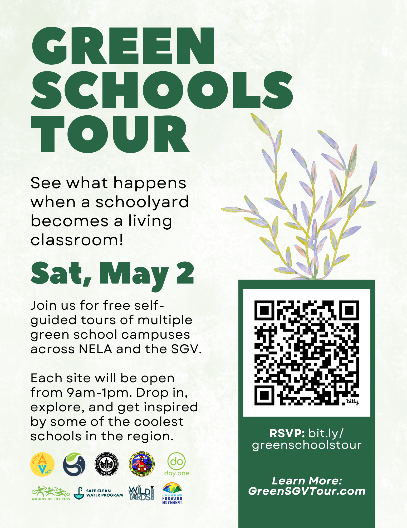 Join us on Saturday, May 2, for free self-guided tours of some of the coolest green school campuses in NELA and the SGV. Each site will be open from 9 am to 1 pm.